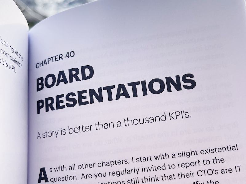 Some organisations still think that their CTO’s are IT managers, or a scaled up Developer who can "fix the website”. If you find yourself in any of those organisations, I would strongly advice you to pack your bag and leave, or stay and seek more experience on how to not do it. A CTO is a C-level title.